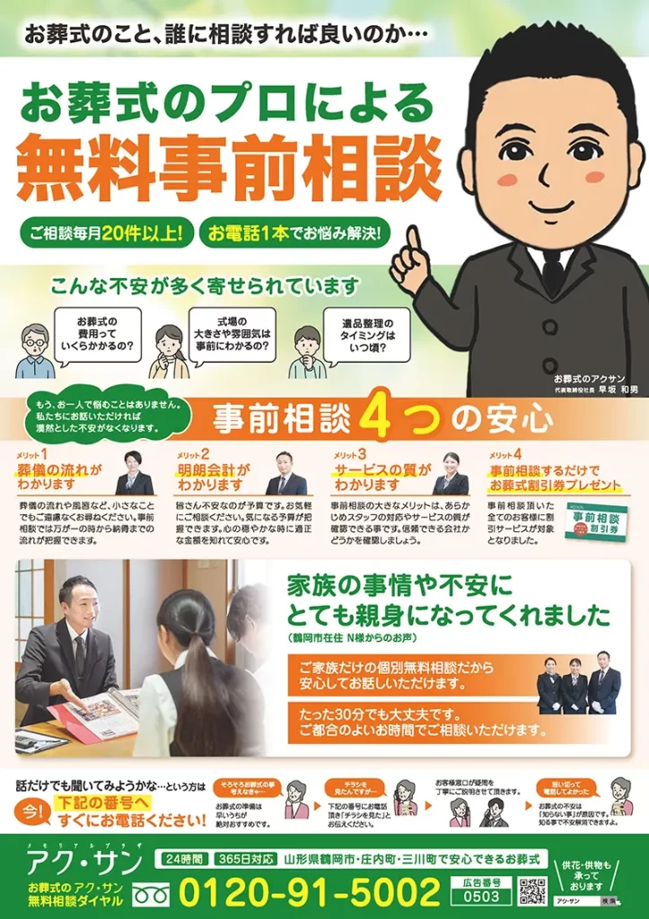 山形県鶴岡市・酒田市・庄内町・三川町で安心できるお葬式ならアクサン
